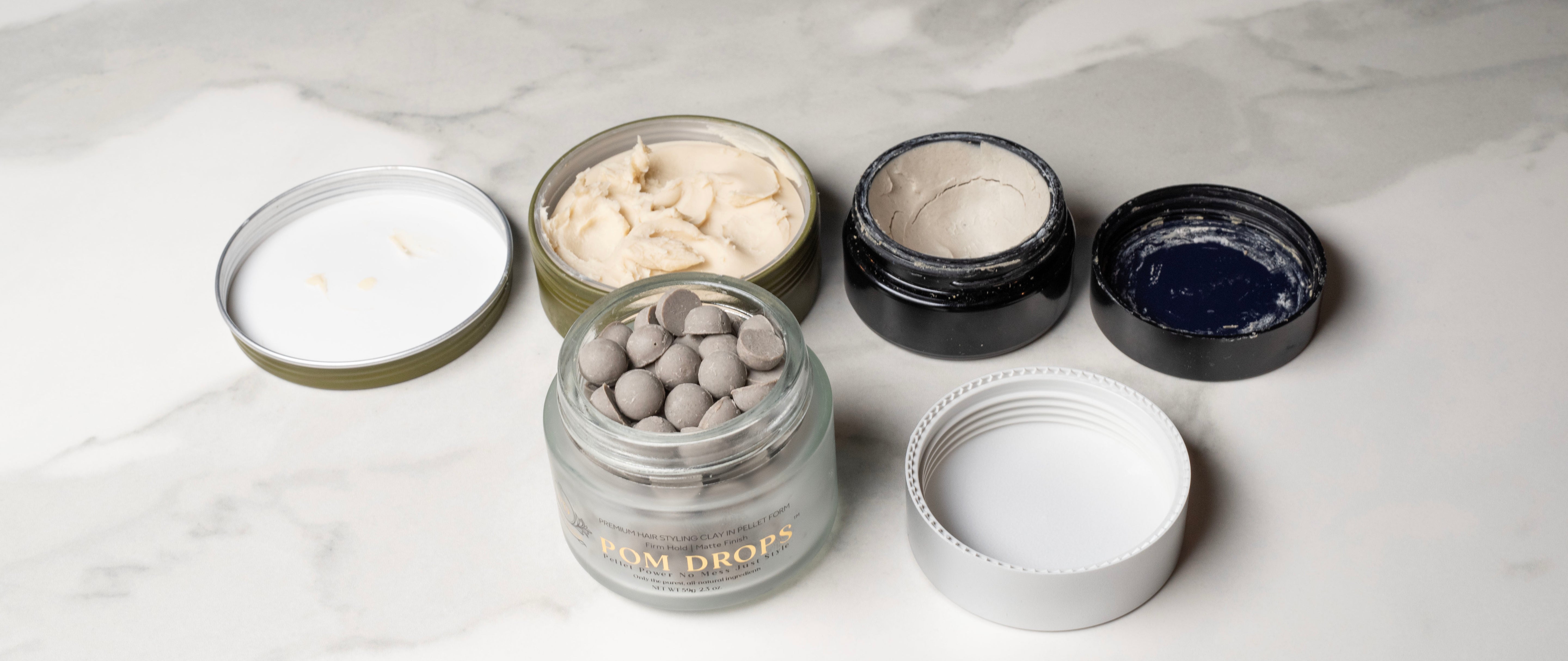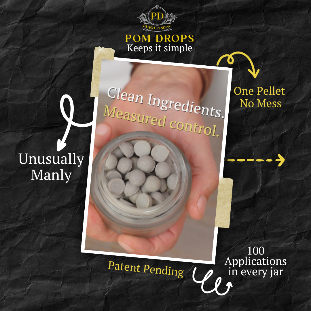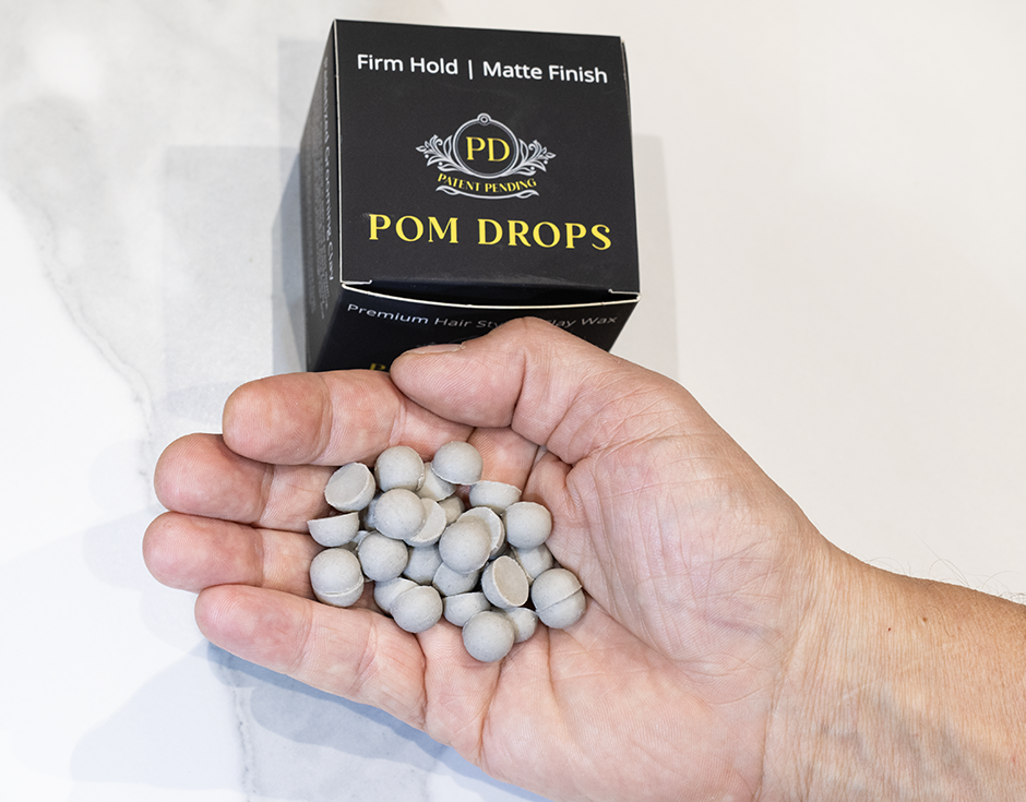 POM DROPS, isn’t just another styling product—it’s the first patent-pending hair clay in precision pellet form. No one else has it, because no one else thought to reinvent hair styling like this. Our pellets deliver the perfect amount every time, without the mess, waste, or bacteria of traditional jars. Cleaner, smarter, and built for modern grooming—this is how we’re changing the game.